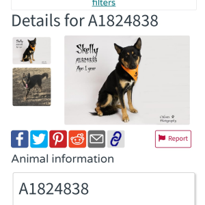 Skelly has been at the shelter since October and is now on the red list for euthanasia. We have a home for him and would like to get him out of the shelter as soon as possible. Thank you.